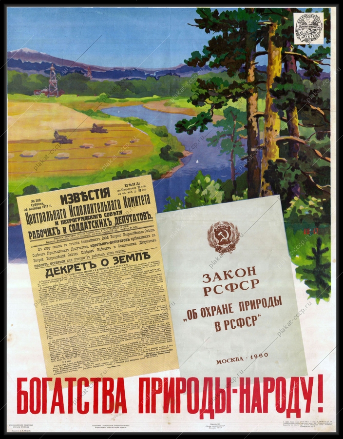 Богатства природы - народу! 1969 Купить плакат СССР "Оригинальный советский плакат богатства природы народу"Подарочный пакет: Оформление в раму + паспорт плаката + подарочная упаковка рамы = включен в стоимость плаката. Подробнее, о вариантах оформления и примерах работ, указано в разделе "Оформление плакатов СССР". Художник А. А. ШкрабоТираж 100 000 экз. Размер: 460/590 мм. Стоимость : 175000.00 руб. |