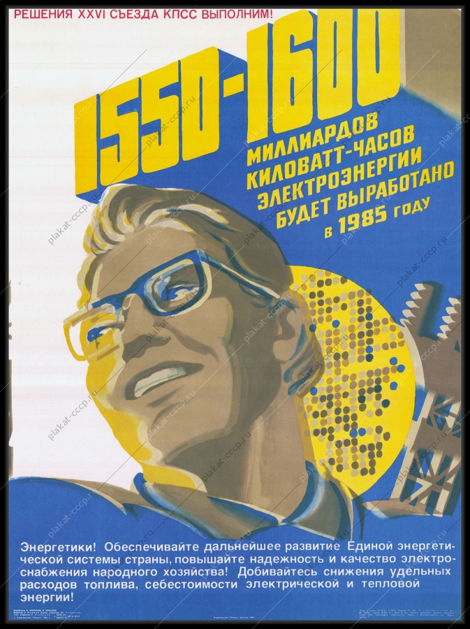 Советский плакат СССР Оригинальный плакат СССР энергетики обеспечение развития Единой Энергетической системы энергетическая промышленностиАртикул: prom_plakat_2009