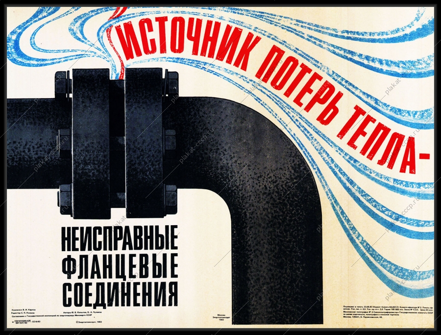 Советский плакат СССР Оригинальный советский плакат источник потерь тепла неисправные фланцевые соединенияАртикул: prom_plakat_2804