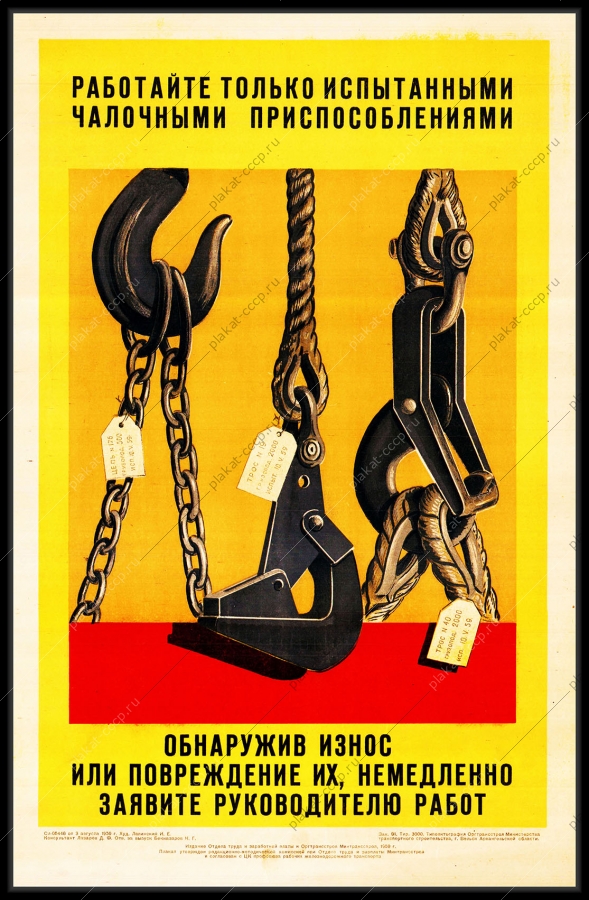 Советский плакат СССР Оригинальный плакат СССР работайте только испытанными чалочными приспособлениями обнаружив износ их или повреждение обязательно сообщите руководителю работАртикул: prom_plakat_3636