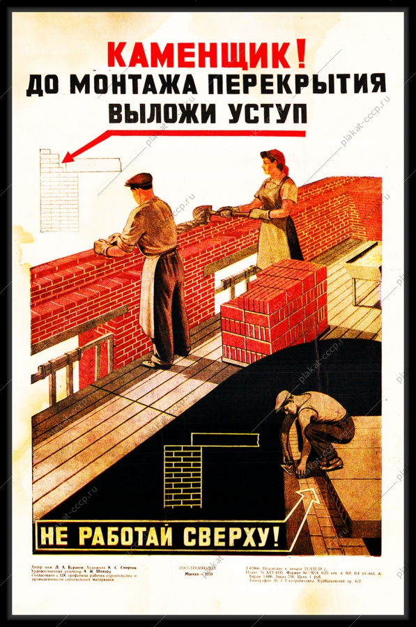 Советский плакат СССР Оригинальный плакат СССР каменщик до монтажа перекрытия выложи уступ не работай сверхуАртикул: prom_plakat_3632