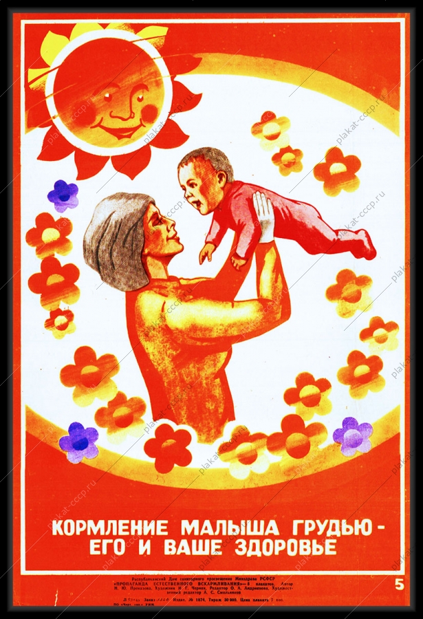 Советский плакат СССР Оригинальный плакат СССР кормление малыша грудью его и ваше здоровьеАртикул: prom_plakat_3707