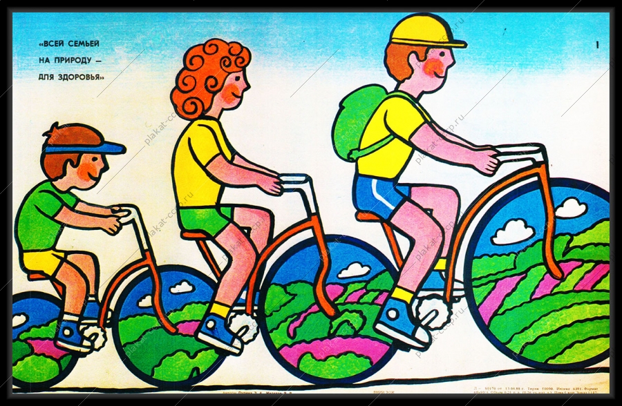 Советский плакат СССР Оригинальный плакат СССР семейный туризм всей семьей на природу для здоровьяАртикул: prom_plakat_3705
