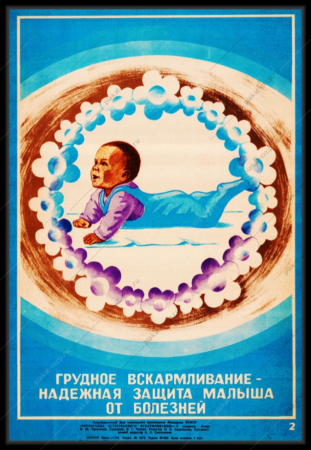 Советский плакат СССР Оригинальный плакат СССР грудное вскармливание надежная защита малыша от болезнейАртикул: prom_plakat_3704