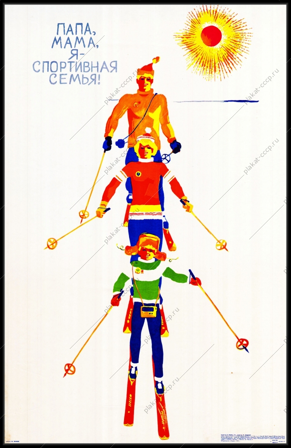 Советский плакат СССР Оригинальный плакат СССР папа мама я спортивная семья лыжный спорт лыжникиАртикул: prom_plakat_3677