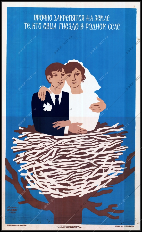 Советский плакат СССР Оригинальный советский плакат семейные ценности молодожены на селе свадьба бракосочетаниеАртикул: prom_plakat_3670