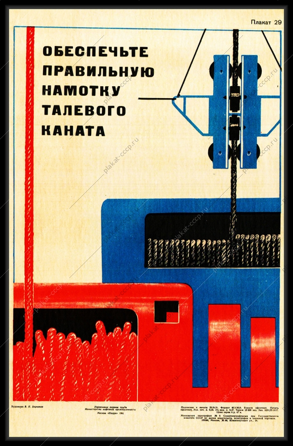 Советский плакат СССР Оригинальный плакат СССР обеспечьте правильную намотку талевого каната охрана труда нефть нефтяная промышленностьАртикул: prom_plakat_3453