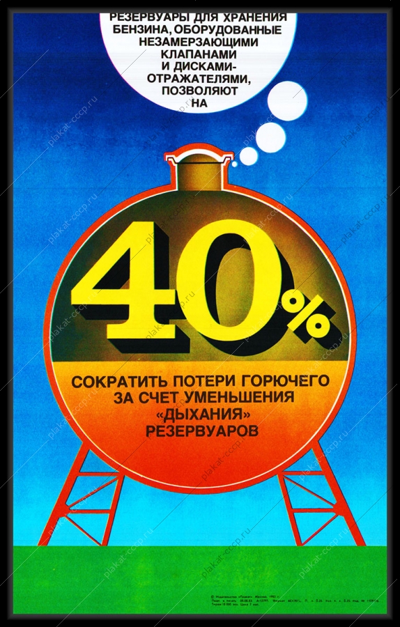 Советский плакат СССР Оригинальный плакат СССР резервуары хранение бензина уменьшение потерь горючегоАртикул: prom_plakat_3590