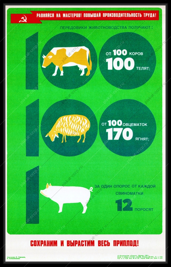 Советский плакат СССР Оригинальный плакат СССР сохраним и вырастим весь приплод коровы телята овцы свиньиАртикул: prom_plakat_3342