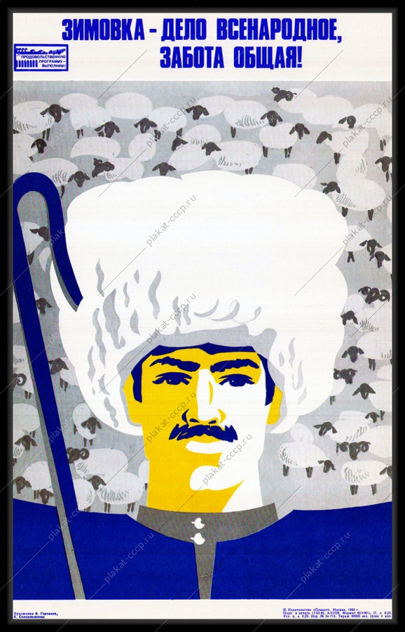 Советский плакат СССР Оригинальный плакат СССР зимовка дело всенародное овцы бараны стригаль овецАртикул: prom_plakat_3343