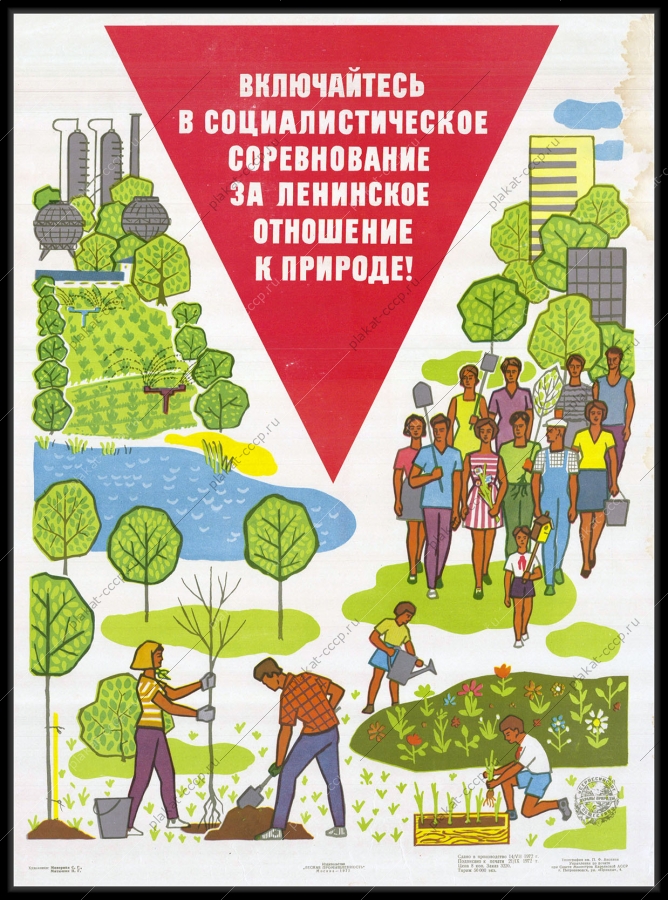 Советский плакат СССР Оригинальный советский плакат посадка деревьев лесная промышленностьАртикул: prom_plakat_3441
