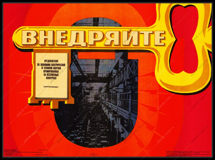 Советский плакат СССР Оригинальный плакат СССР внедряйте предложения по экономии электрической и тепловой энергии энергетикаАртикул: prom_plakat_3385