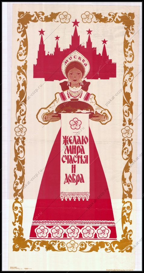Советский плакат СССР Оригинальный советский плакат желаю мира счастья и добра МоскваАртикул: prom_plakat_3212