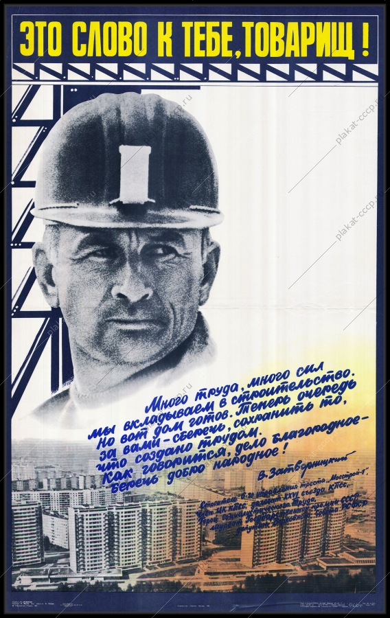 Советский плакат СССР Оригинальный советский плакат Мосстрой- строительство новостроек высотных жилых домовАртикул: prom_plakat_3219