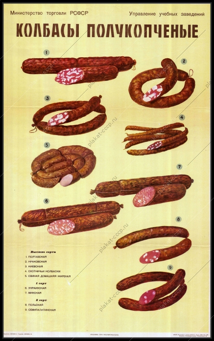 Советский плакат СССР Оригинальный советский плакат реклама СССР колбасы полукопченыеАртикул: prom_plakat_1109