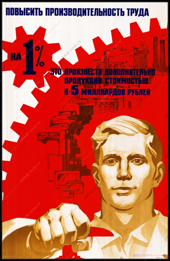 Советский плакат СССР Оригинальный советский плакат повысить производительность труда на это произвести дополнительно продукции стоимости в миллиардов рублейАртикул: prom_plakat_3160