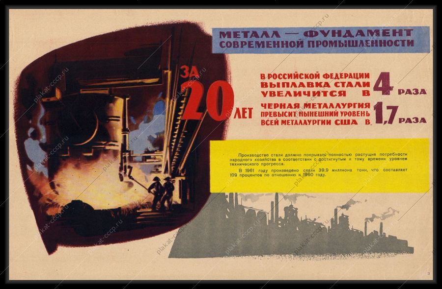 Советский плакат СССР Оригинальный советский плакат металл фундамент современной промышленности металлургияАртикул: prom_plakat_3190