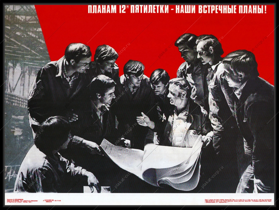 Советский плакат СССР Оригинальный советский плакат планам пятилетки наши встречные планы тяжелая промышленностьАртикул: prom_plakat_3161