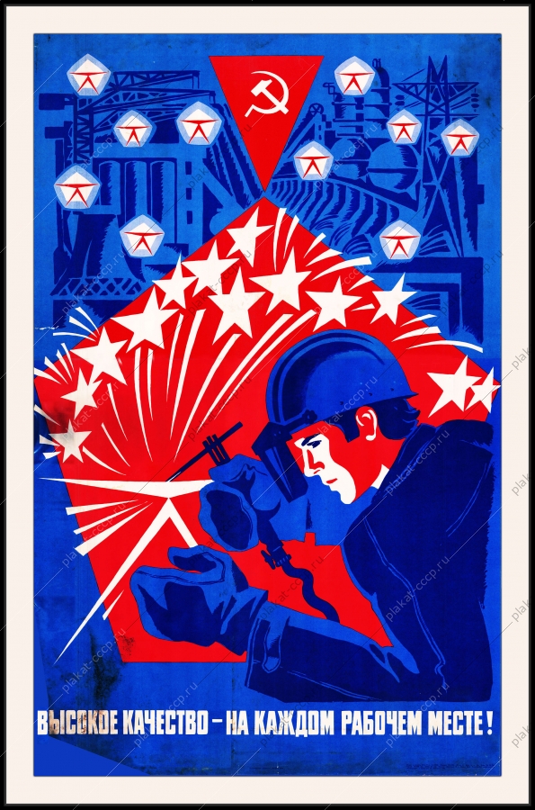 Советский плакат СССР Оригинальный советский плакат высокое качество на каждом рабочем месте строительство знак качества СССРАртикул: prom_plakat_3511