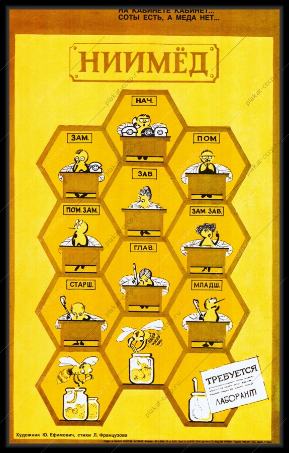 Советский плакат СССР Оригинальный советский плакат СССР ниимед требуется лаборантАртикул: prom_plakat_3290