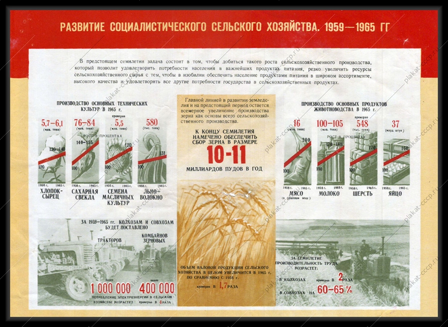 Советский плакат СССР Оригинальный плакат СССР развитие сельского хозяйства -Артикул: prom_plakat_3538