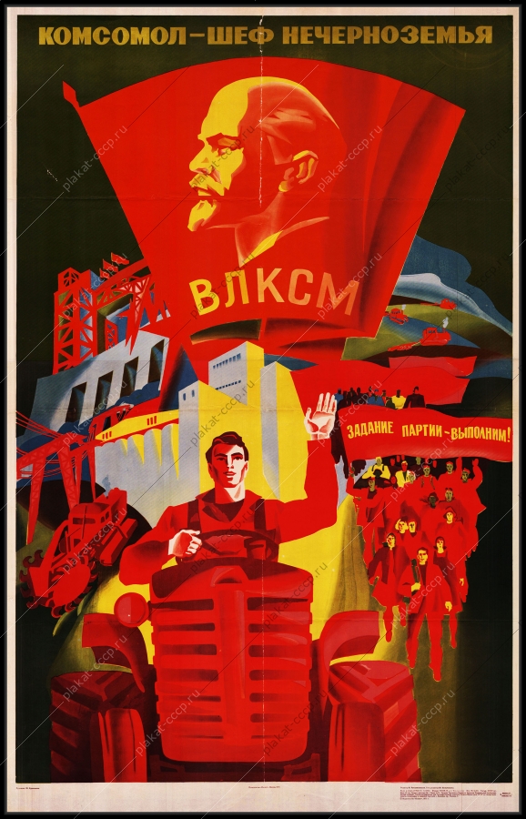 Советский плакат СССР Оригинальный советский плакат комсомол шеф Нечерноземья ВЛКСМАртикул: prom_plakat_3128