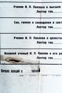 | Расписание цикла лекций "Великий русский физиолог Павлов и его учение" 1952 |