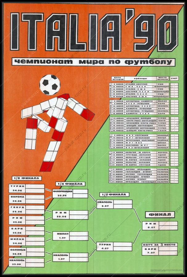 Оригинальный советский плакат чемпионат мира по футболу 1990 года |