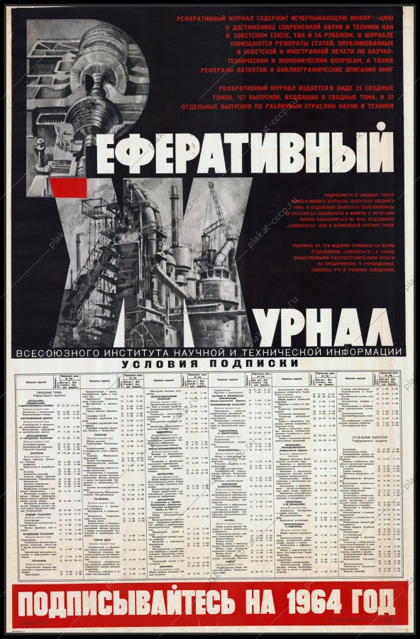Оригинальный советский плакат реферативный журнал о достижениях науки и техники СССР |