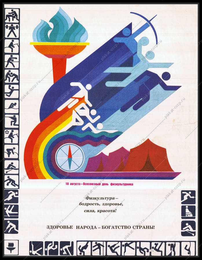 10 августа - всесоюзный день физкультурника. Физкультура - бодрость, здоровье, сила, красота! Здоровье народа - богатство страны! Купить плакат СССР "Оригинальный советский плакат всесоюзный день физкультурника"Подарочный пакет: Оформление в раму + паспорт плаката + подарочная упаковка рамы = включен в стоимость плаката. Подробнее, о вариантах оформления и примерах работ, указано в разделе "Оформление плакатов СССР". Размер: 430/560 мм.Стоимость : 135000.00 руб. |