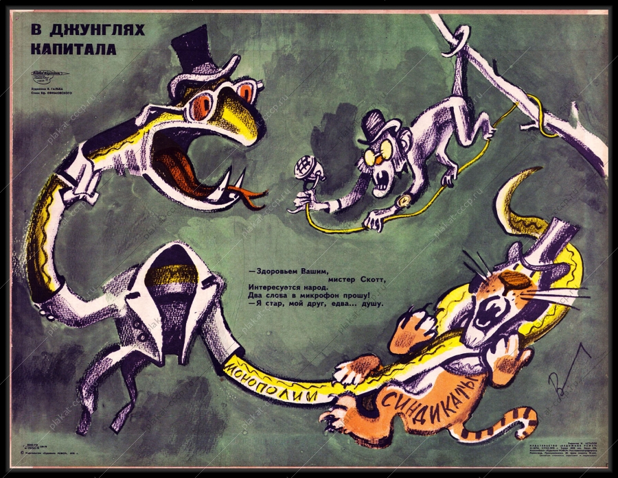 Советский плакат СССР Оригинальный плакат СССР в джунглях капитала монополия синдикат холодная война финансыАртикул: rus_plakat_4794