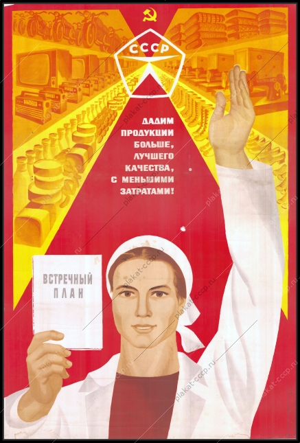 Советский плакат СССР Оригинальный советский плакат дадим продукции большего лучшего качества общепит пищевая промышленностьАртикул: rus_plakat_2744