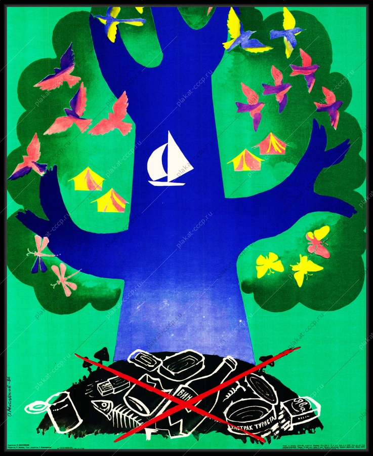 Советский плакат СССР Оригинальный плакат СССР туризм экология бытовой мусорЭтот плакат на тему экологии 1986 года выпуска, призывает туристов бережно относиться к природе.