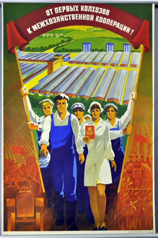 Советский плакат СССР Оригинальный плакат СССР межхозяйственная кооперация колхозы сельское хозяйство коллективизация теплицаАртикул: rus_plakat_5221