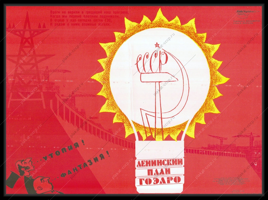 Советский плакат СССР Оригинальный советский плакат ГЭС ГОЭРЛО атомные электростанции мирный атомАртикул: rus_plakat_5205
