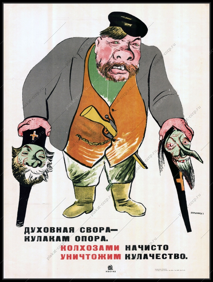 Советский плакат СССР Оригинальный советский плакат кулачество колхозы гражданская войнаАртикул: rus_plakat_5219