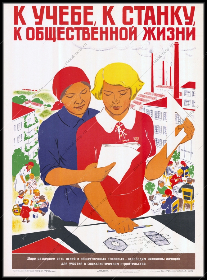 Советский плакат СССР Оригинальный советский плакат учеба работа общественная жизнь женщин открытие новых яслей детских садовАртикул: rus_plakat_5198