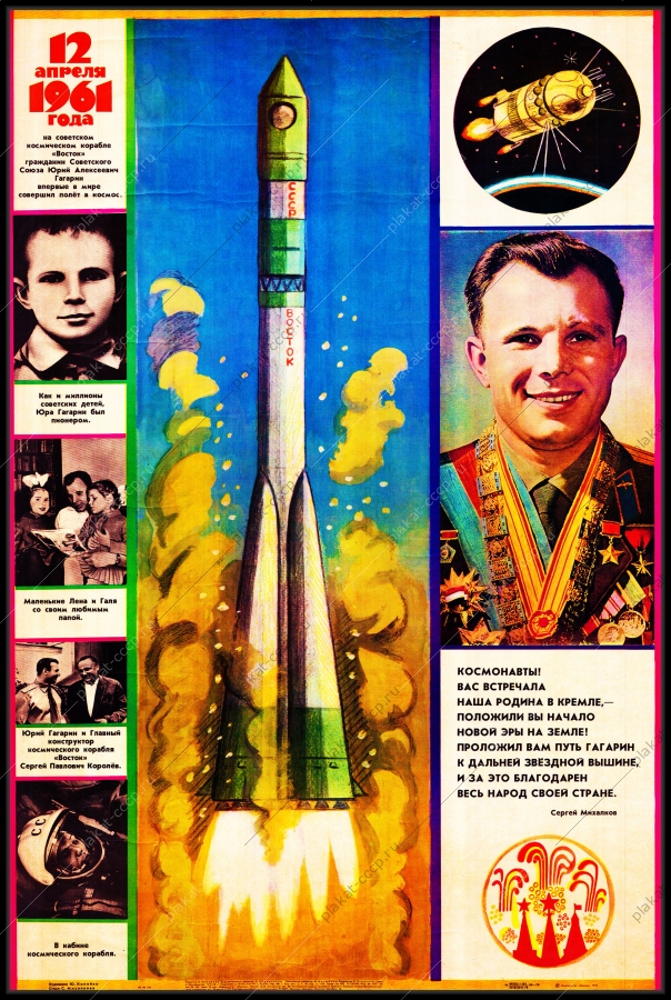 Советский плакат СССР Оригинальный плакат СССР космос полет Юрия ГагаринаАртикул: rus_plakat_5186