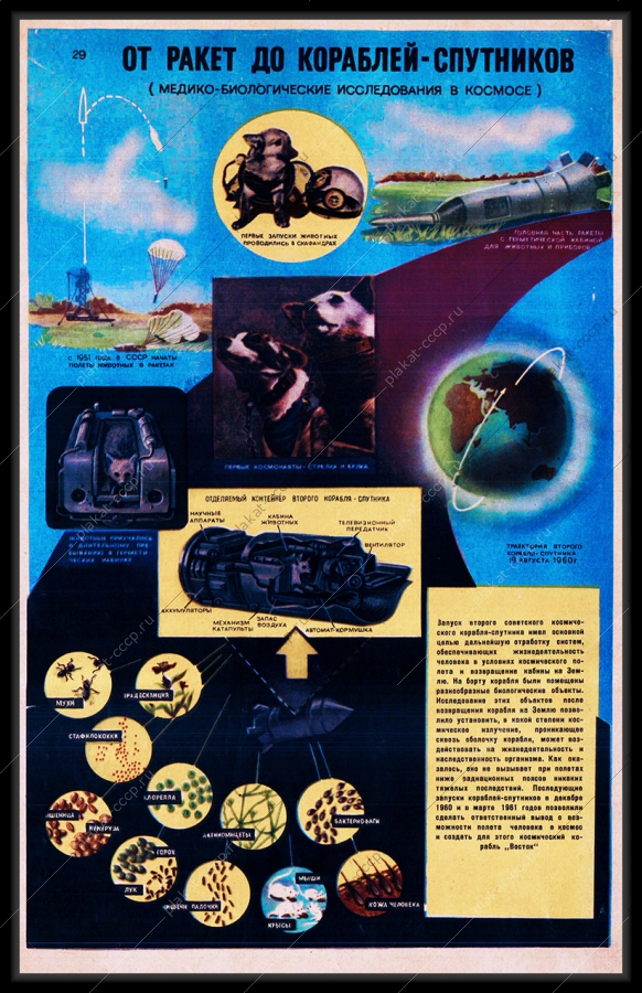 Советский плакат СССР Оригинальный плакат СССР от ракет до кораблей спутников космонавты белка и стрелкаАртикул: rus_plakat_5135