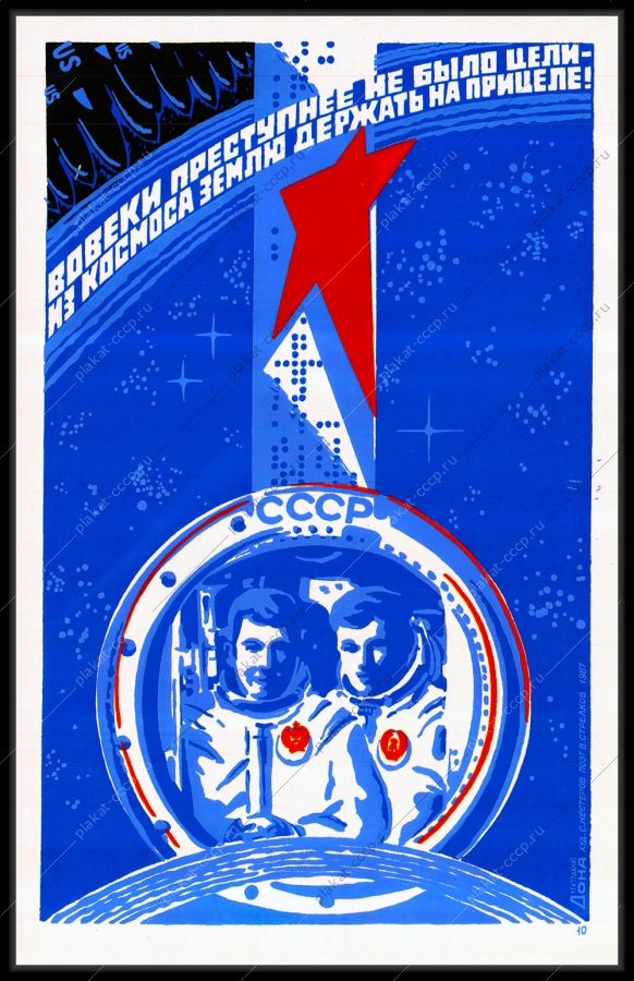 Советский плакат СССР Оригинальный плакат СССР вовеки преступнее не было цели из космоса землю держать на прицелеАртикул: rus_plakat_5140