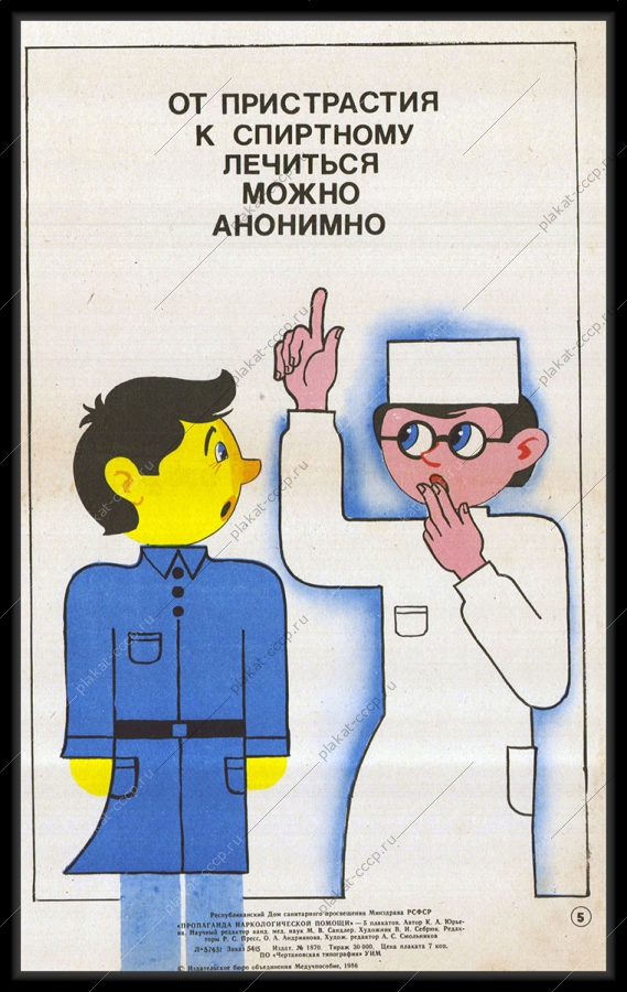 Советский плакат СССР Оригинальный плакат СССР от пристрастия к спиртному лечиться можно анонимно наркология наркологическая помощьАртикул: rus_plakat_4954