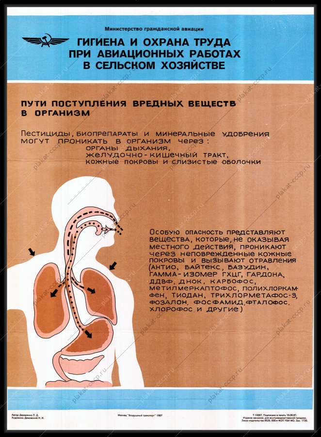 Советский плакат СССР Оригинальный плакат СССР гигиена и охрана труда при авиационных работах в сельском хозяйствеАртикул: rus_plakat_4413