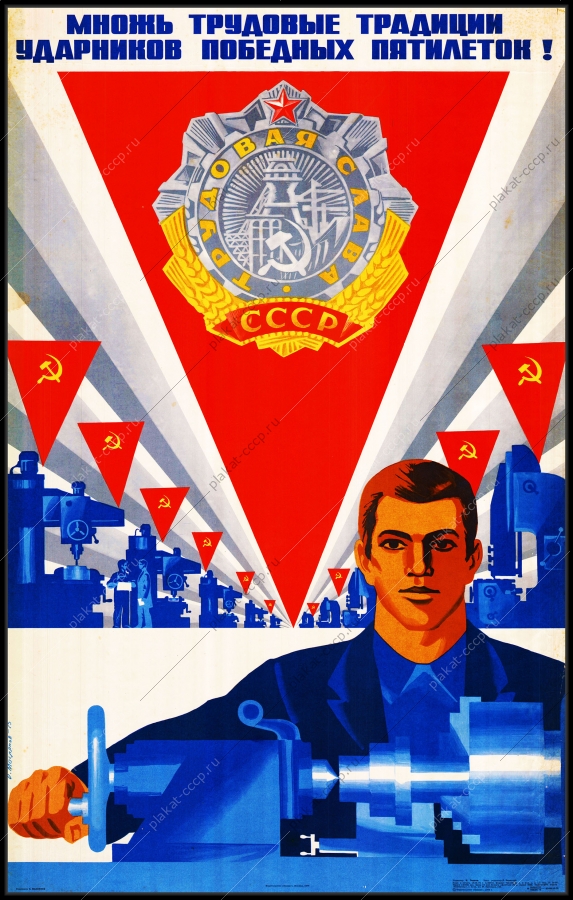Советский плакат СССР Оригинальный плакат СССР множь трудовые традиции ударников победных пятилеток промышленность производство станкиАртикул: rus_plakat_5111