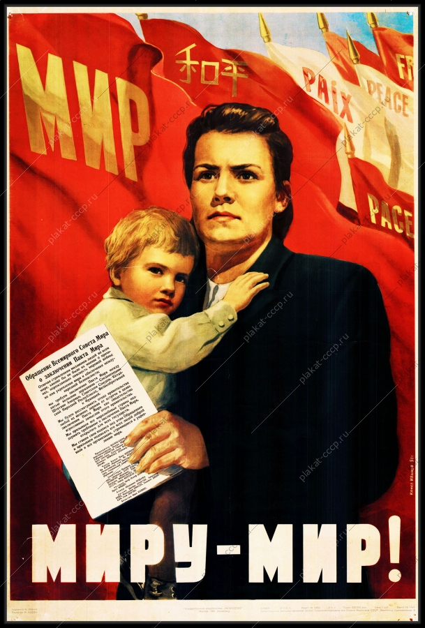 Советский плакат СССР Оригинальный советский плакат Миру Мир политика дипломатияАртикул: rus_plakat_4009