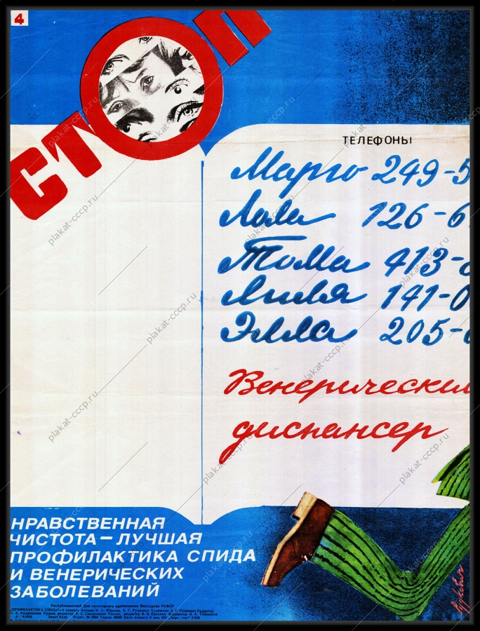 Советский плакат СССР Оригинальный советский плакат профилактика СПИДА и венерических заболеванийАртикул: rus_plakat_4311