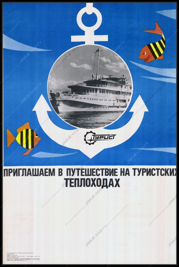 Советский плакат СССР Оригинальный советский плакат приглашаем в путешествие на туристских теплоходах водный туризмАртикул: rus_plakat_4463