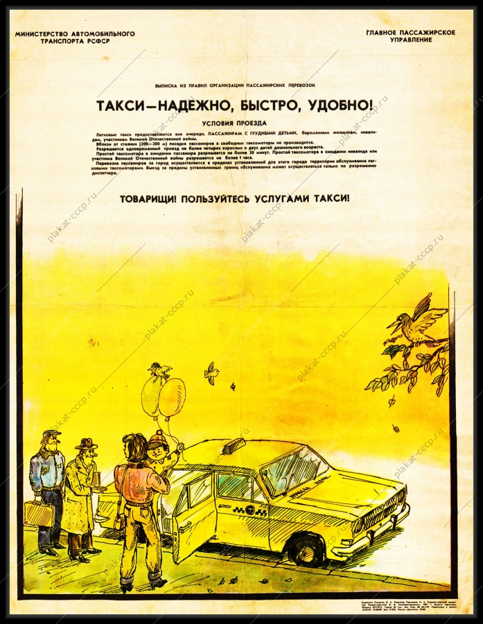 Советский плакат СССР Оригинальный плакат СССР такси таксопарк таксистАртикул: rus_plakat_4993