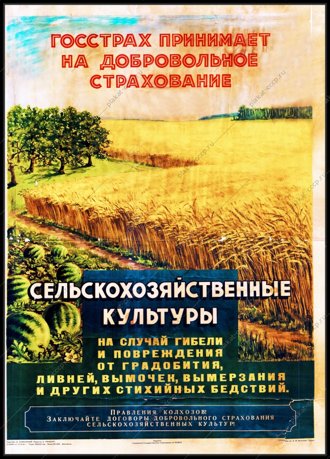 Советский плакат СССР Оригинальный плакат СССР страхование сельскохозяйственные культурыАртикул: rus_plakat_5220