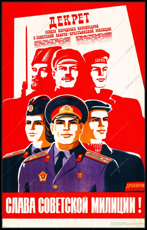 Советский плакат СССР Оригинальный плакат СССР слава советской милиции декрет совета народных комиссаров о советской рабоче-крестьянской милицииАртикул: rus_plakat_5089