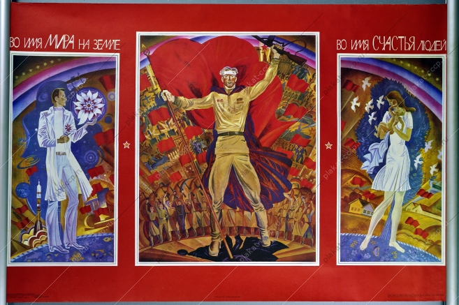 Советский плакат СССР Оригинальный плакат СССР мир на земле счастье людей патриотизм военный тыл женщины наукаАртикул: rus_plakat_1299